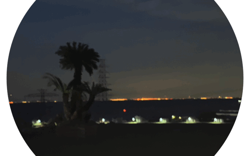 夜は小高い丘のほのぼのとした明かりが