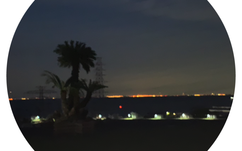 夜は小高い丘のほのぼのとした明かりが